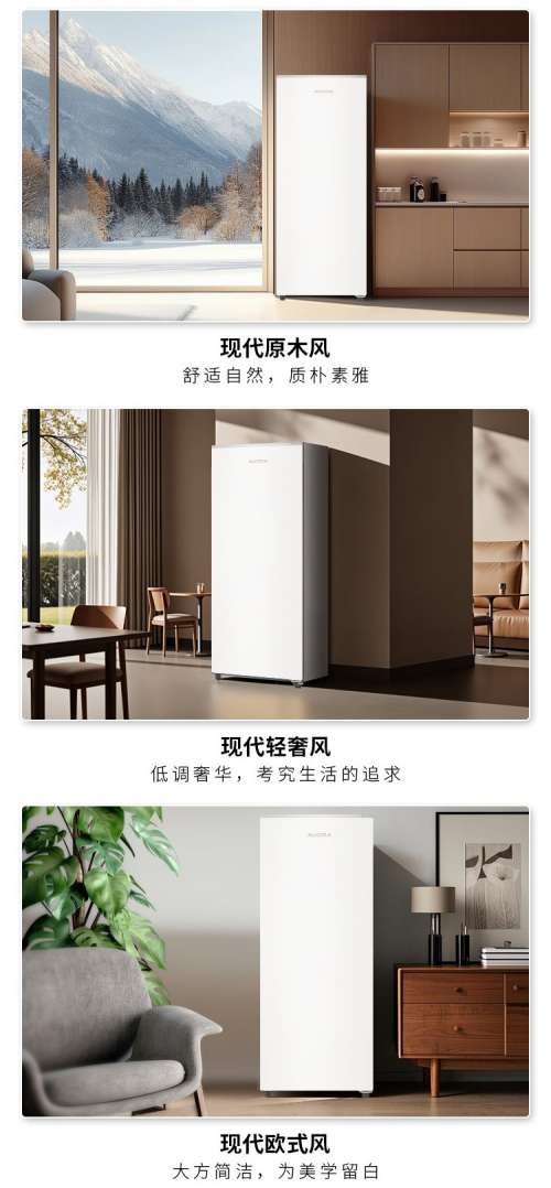 囤年货,空间问题得先解决!传统冷柜多为卧式设计,不仅占用空间大,还需预留开门操作距离,难以适配小户型阳台、厨房角落等紧凑空间。澳柯玛立式冷柜采用立式侧开门设计,机身小巧纤薄,可灵活放入阳台柜旁、厨房转角等区域,完美融入现代家居布局。无论是简约风、轻奢风还是北欧风装修,都能实现“储鲜工具”与“家居装饰”的和谐统一,解决了传统冷柜“占地大、颜值低”的痛点。