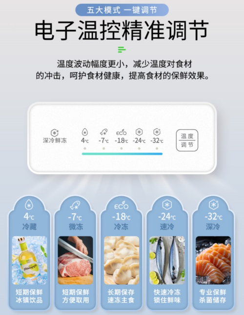 用起来也超省心!新品内置电子温控触控屏,操作简单直观,长辈一看就会、轻松上手~ 还有冷藏、微冻、冷冻、速冻、深冷五大模式,一键就能切换,全面覆盖春节多样储鲜需求:冷藏放水果、饮料;微冻模式让肉类“即取即切”,不用等解冻;深冷模式专门存放海参、鲍鱼等珍贵年货,长期保鲜无压力,日常储鲜和节日囤货高峰都能轻松应对。另外搭配风冷无霜技术,不用手动除霜,春节期间少了清洁麻烦,能多花点时间陪伴家人啦~