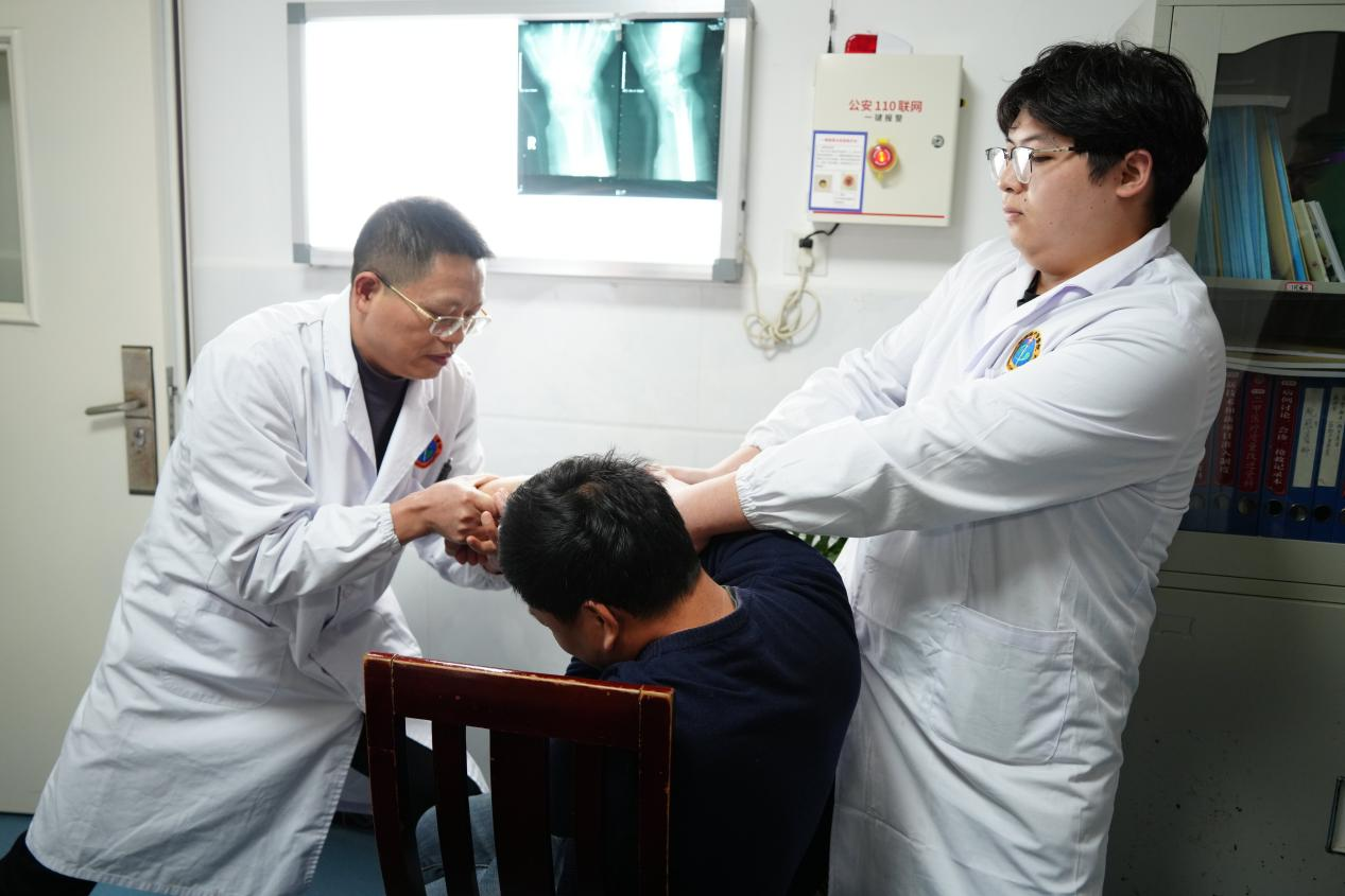 绥宁县中医院医师正在为患者进行正骨疗法(黄钟 摄)