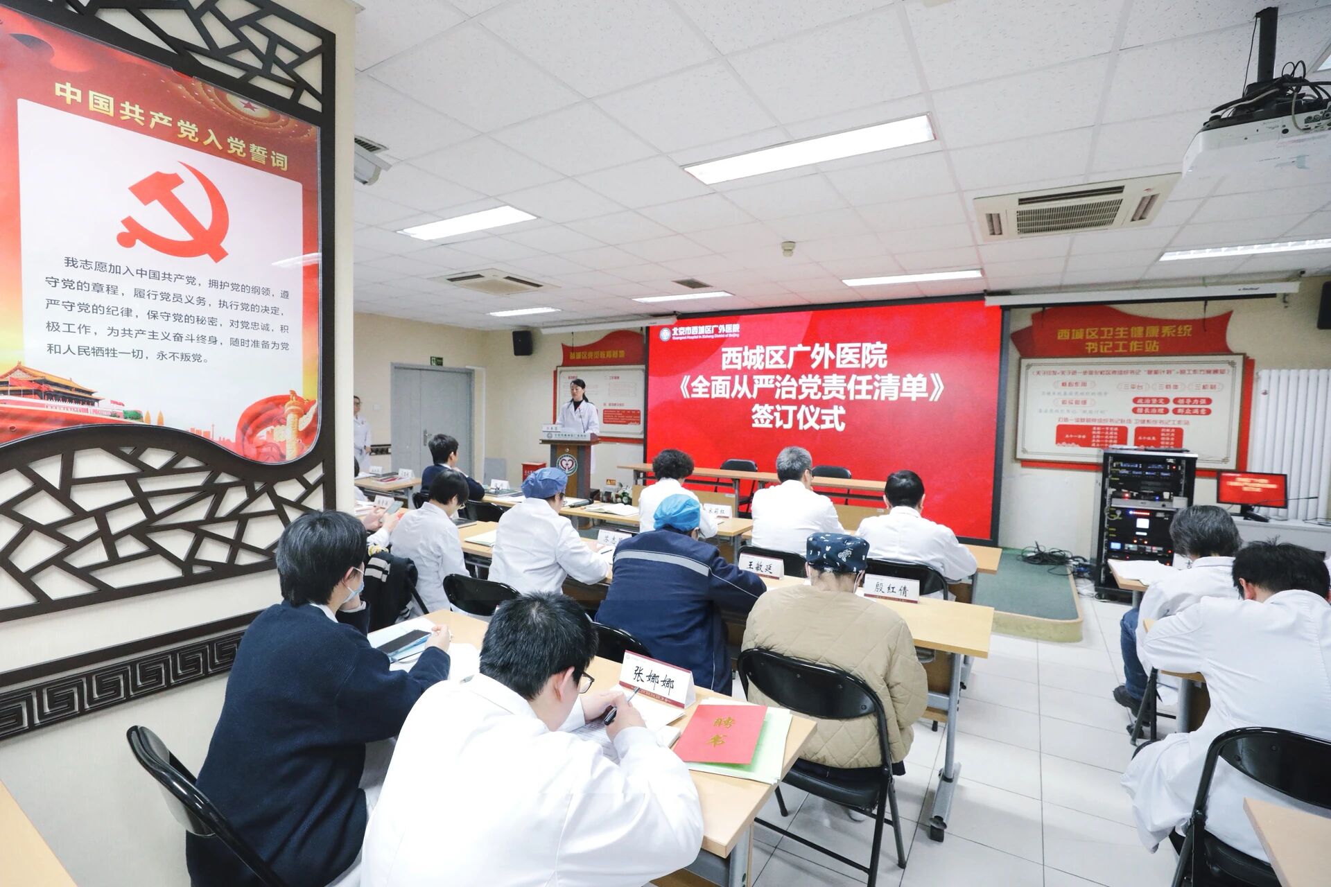 立春将至,万象更新;马年奔腾,开局冲刺。1月28日,广外医院以“一会双签”的务实形式,举行全面从严治党主体责任清单与2026年度综合目标责任书签订仪式,以“双责并担”的坚定姿态,同步压紧压实全面从严治党政治责任与年度发展目标任务,为新一年工作锚定方向、凝聚合力。会议由党委副书记、纪委书记禹利燕主持。