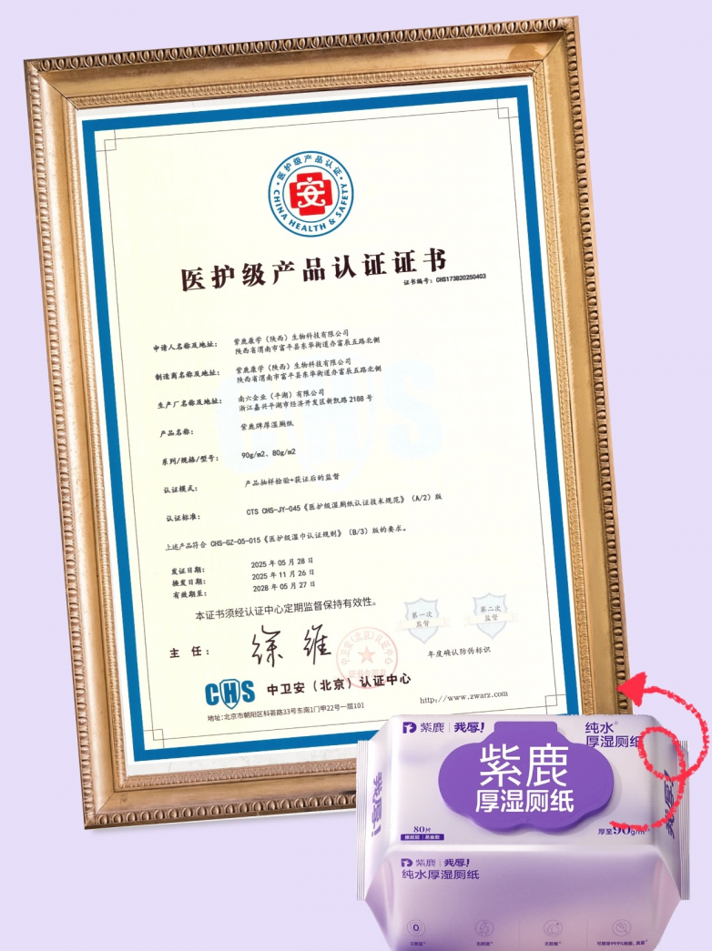 在湿厕纸市场,诸如“纯净”、“亲肤”等描述性宣传语曾长期主导。紫鹿引入“医护级”认证,将抽象的安全承诺转化为可验证、可追溯的硬指标。这为行业建立了清晰的品质标尺: