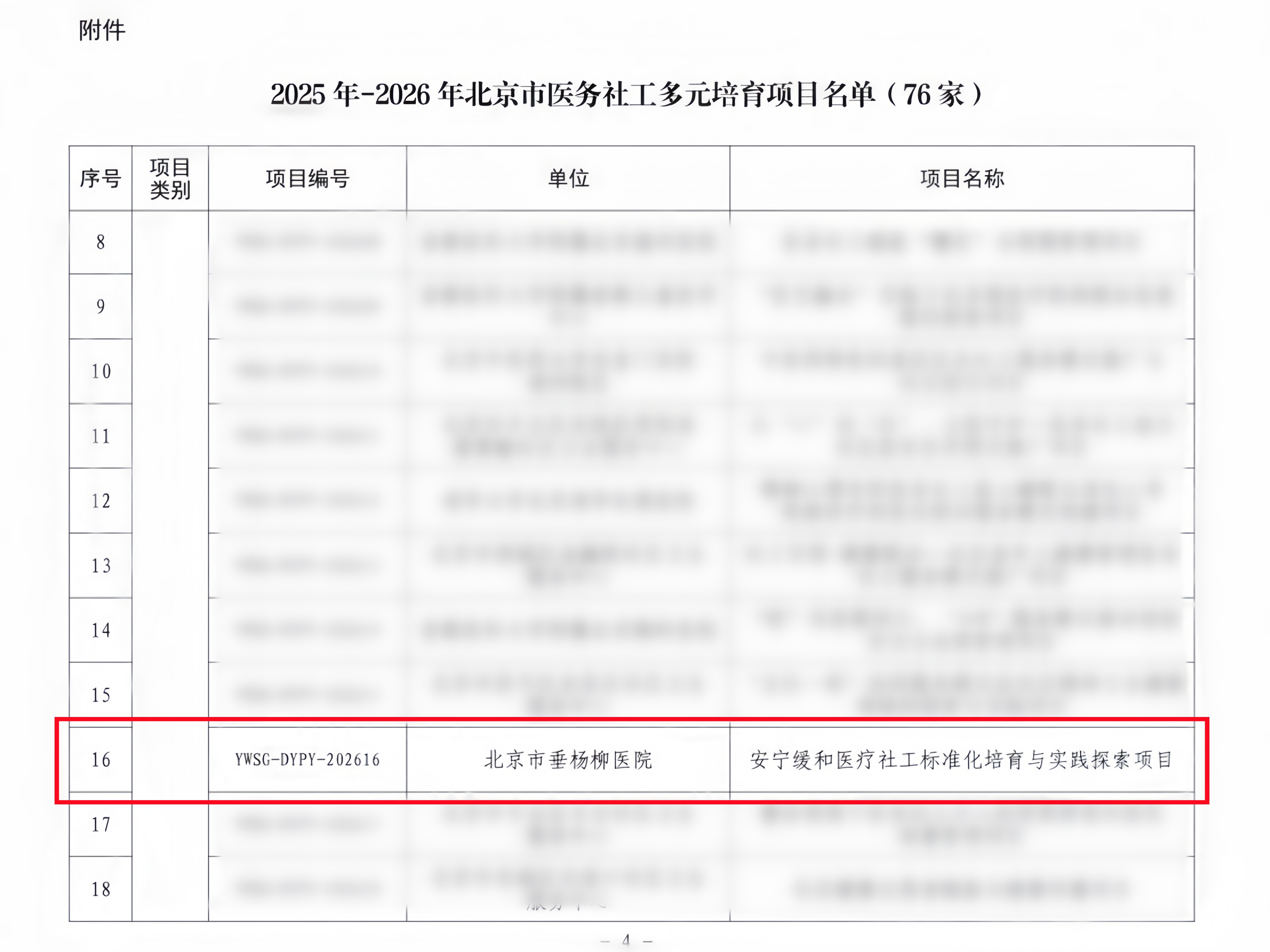 近日,北京市卫生健康委员会公布了2025年至2026年北京市医务社工多元培育服务项目的遴选结果,经单位申报、现场汇报、专家评审等程序,清华大学附属垂杨柳医院老年医学科申报的“安宁缓和医疗社工标准化培育与实践探索项目”凭借鲜明的专业特色、扎实的工作基础和明确的引领目标,成功入选辐射引领类项目。