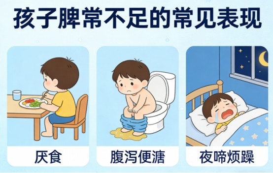 脾胃失调的儿童往往呈现两大典型表现:一是食欲不振、大便异常(腹泻或便溏);二是烦躁哭闹、睡眠不安(夜啼、盗汗、趴睡)。细心的家长还能从身体的表现发现端倪:下眼睑发青发红、鼻梁有青筋、唇色苍白、舌苔厚腻、面色萎黄等,这些都是孩子脾虚运化失常的“信号”。更严重的是,儿童脾虚会形成恶性循环——脾胃运化不力,营养无法吸收,孩子体质下降,容易反复感冒;生病用药又进一步损伤脾胃功能,导致越病越虚、越虚越病。
