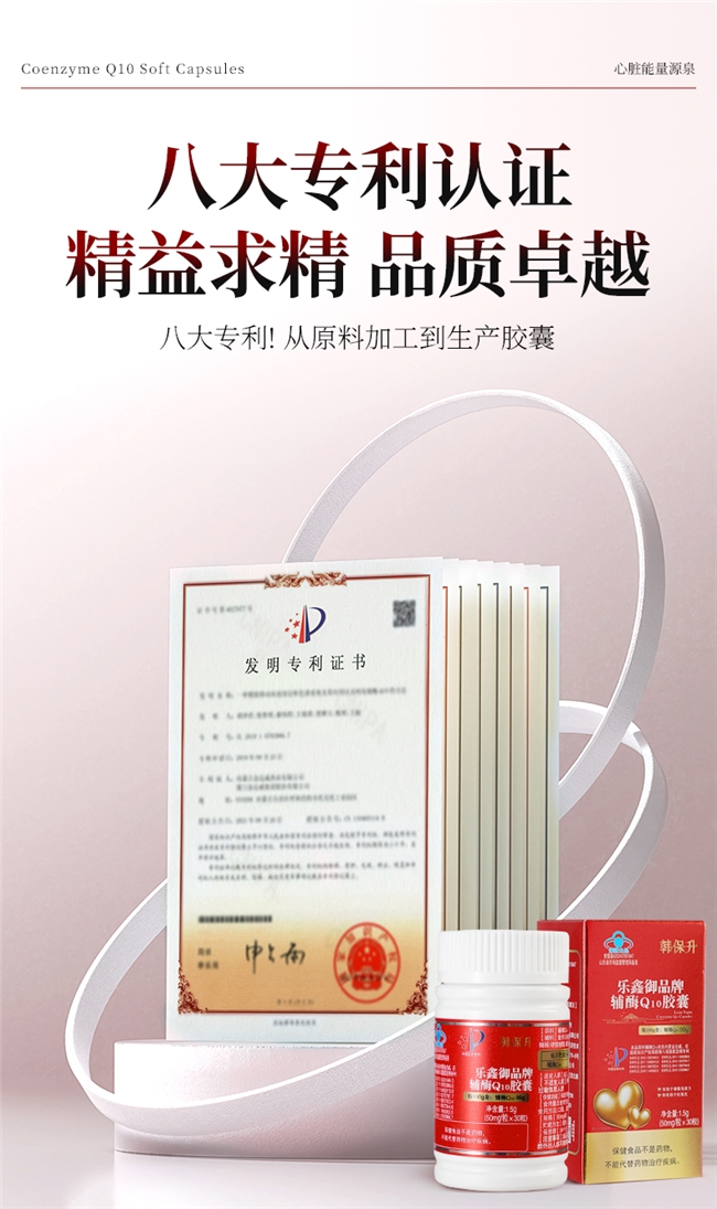 专利覆盖四大关键环节,奠定还原型辅酶标杆地位,技术实力经官方检测认可,专利证书可通过溯源系统或国家专利局官网查询。