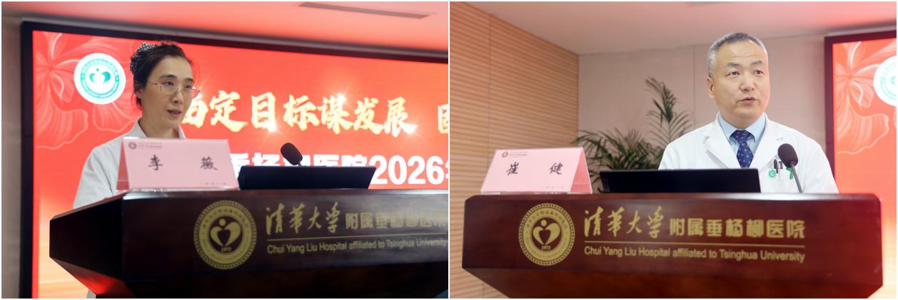随后,临床科室主任李薇与崔健作为科室代表进行发言。他们结合自身工作实际,畅谈对2026年工作的规划与展望。他们表示,将以更饱满的热情、更务实的作风,投身到医疗服务工作中,主动担当、积极作为,精进医疗技术,优化服务细节,为守护群众健康、推动医院发展贡献临床力量。
