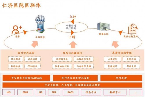 2020年10月,上海交通大学医学院附属仁济医院与平安智慧城市正式签署多院区一体化智慧医院建设协议,双方将围绕新一代智慧医院建设,发挥平安在金融领域和医疗科技领域的独特优势,共同打造全流程健康管理和风险保障闭环,提升医疗服务效能,改善患者就医体验。不仅如此,上海交通大学医学院附属仁济医院还联合平安智慧城市推出了智慧医联体,构建了以仁济医院为中心的“1+X”模式,联动区域内、区域间的各级医院和社区卫生服务中心,打通了诊前筛查、协同诊疗、院后管理的全流程闭环管理。目前仁济医院已经实现医联体内年均下转患者7000多例,帮助医联体内单位的诊疗量增长数十倍。