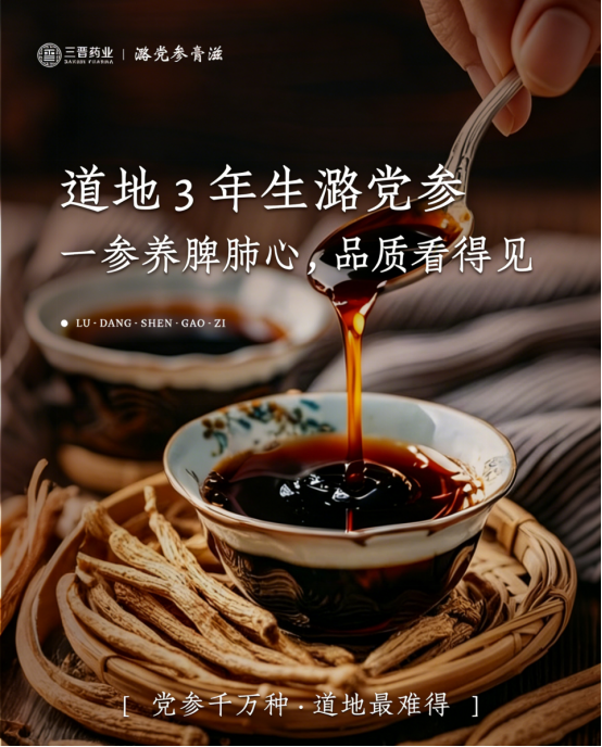 三晋潞党参膏滋的核心原料,是产自山西平顺县的3 年生道地潞党参,这里是国家地理标志产品核心产区,海拔高、昼夜温差大、土壤富含矿物质,孕育的潞党参有效成分含量远超普通党参,党参多糖、党参皂苷、18 种氨基酸等活性物质更充足,补气益肺效果更突出。每一袋膏滋,都浓缩了 3 株 3 年生潞党参的全株精华,原料品质严苛把控,从源头保障药效。