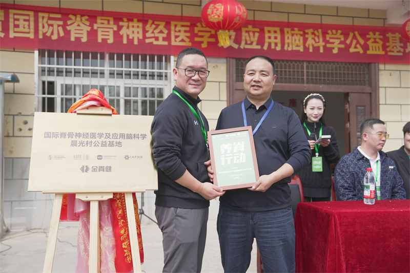 活动仪式上,金脊健(上海)健康管理有限公司CEO、CAC中国脊骨神经科协会董事程学军,携手晨光村党支部书记杨书记共同上台,为“国际脊骨神经医学及应用脑科学晨光村公益基地”正式揭牌。这一举措,标志着国际前沿康复技术正式在晨光村落地生根,将长期承担技术推广、乡医培训、健康宣教、康复指导等核心职能,让脊骨神经医学与应用脑科学成为乡村百姓触手可及的健康保障。