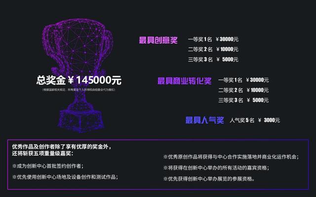 本次盛赛将邀请重量级评委,评选出的优秀创作者,将给予现金及签约等多重嘉奖,优秀创意还可帮助其商业转化,此举旨在促进数字艺术与各个行业快速融合,推动其创新和发展,促进各方合作共赢。