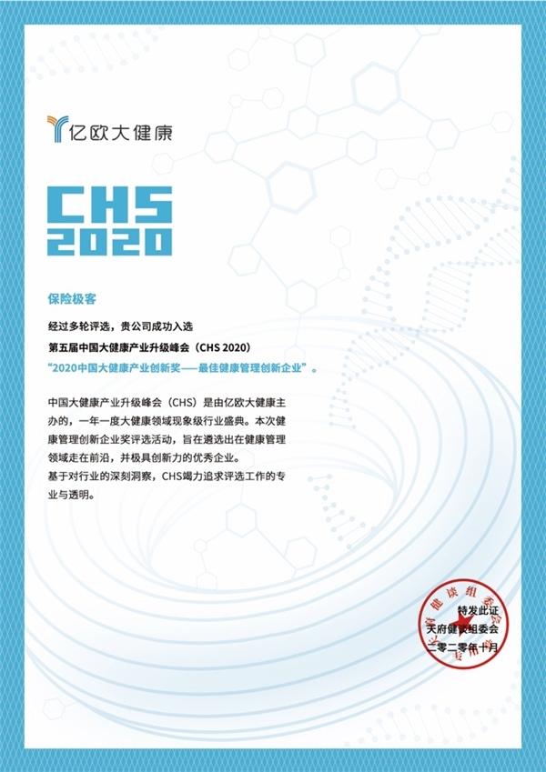 值得一提的是,在本次大会上,保险极客还荣获“2020中国大健康产业创新奖—最佳健康管理创新企业”称号,这也充分彰显了业界对其在大健康领域所作出的贡献的高度认可。