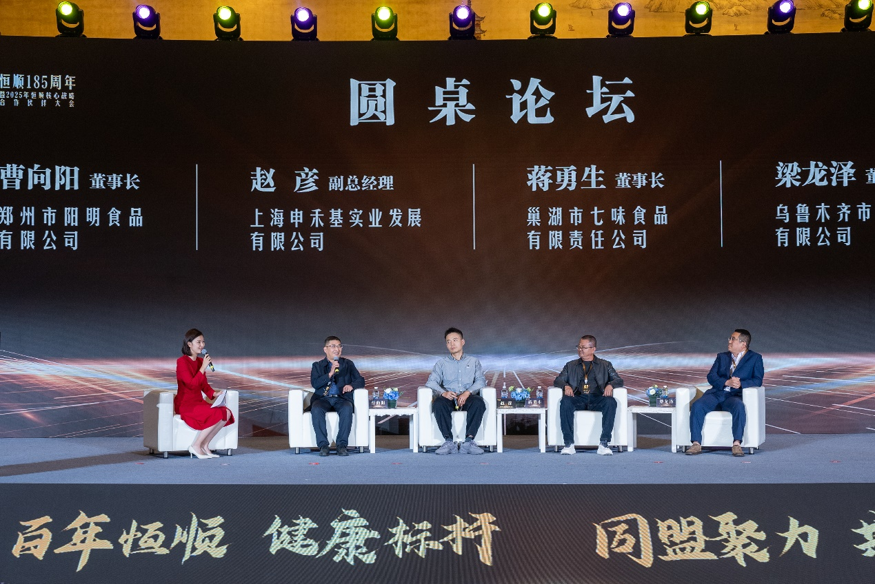 在圆桌论坛环节,四位经销商代表分享了来自市场一线的实践智慧。他们的发言既有破局困境的坚韧与智慧,也饱含对恒顺品牌的深厚情谊,展现出与恒顺“志同道合、携手前行”的坚定信念。