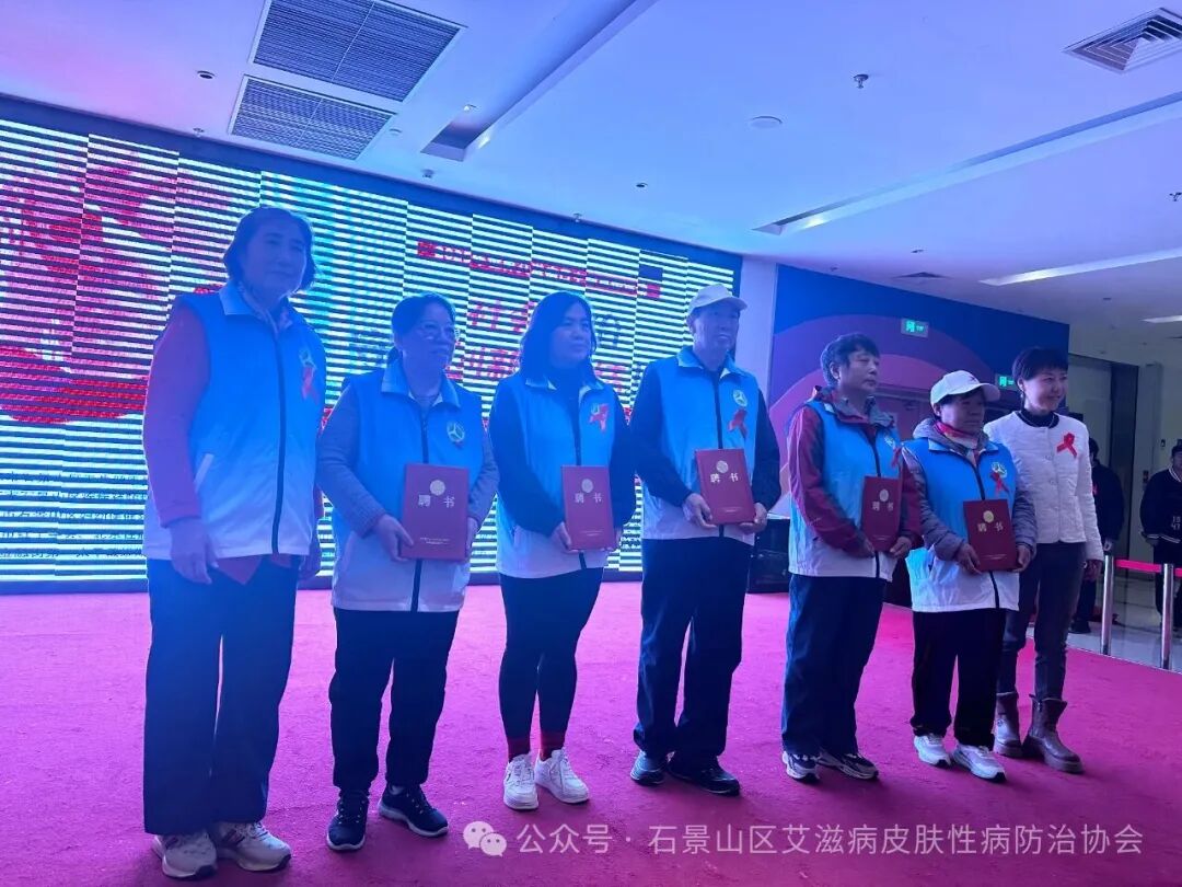 志愿服务队伍建设是防艾事业的核心动力。活动中,石景山区艾滋病皮肤性病防治协会为骨干志愿者颁发聘书,聘请侯燕桔为北京市红十字同心相随志愿服务队队长,杜素平等4人担任相关职务。侯燕桔深耕防艾志愿服务10余年,带领团队开展干预活动百余场,其余受聘者累计服务时长均超2000小时,用坚守诠释志愿精神。