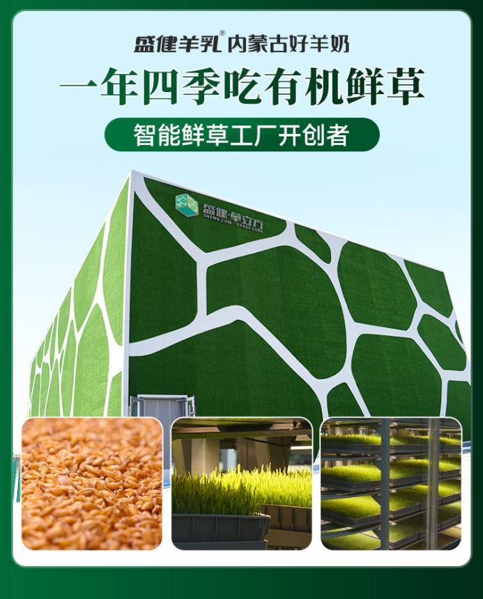 牧场管理中,数字科技的应用让品质把控更趋精准。每只奶山羊均佩戴智能耳标,体温、采食等数据实时监测,全程实现零抗生素、零激素,从养殖环节彻底规避非法添加风险。针对饲草供应痛点,盛健羊乳创新打造“草立方数字鲜草工厂”,通过生物光能技术实现365天稳定产草,日产5吨有机鲜草,其营养价值较传统牧草提升1.4-1.8倍。这一创新不仅从根本上杜绝因饲草不足使用劣质原料的可能,更能为干旱草原减轻30万亩生态压力,实现生态保护与品质提升的双赢。
