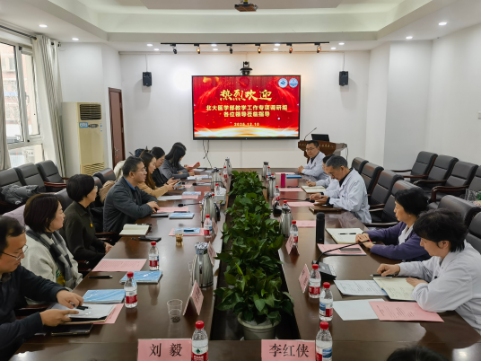 紧接着由科研教育处副处长傅强以 “医院概况、核心教学工作、现存不足及展望” 为脉络,分为六个部分做了详细教学工作汇报;十多年来我学院国际化人才培养成果显著,21级尼泊尔留学生雷若龙斩获新加坡国立大学2024年医学大挑战全球季军,2013级阿富汗学生海丝等留学生曾作为北医留学生代表给习近平总书记写信,习近平总书记给与回信,彰显学院 “知华、友华、爱华” 的国际育人导向。我院教学体系规范完善,构建六级管理体系,落实课前试讲集体备课、常态化开展教学查房、小讲课、病例讨论,夯实学生实践能力。师资与保障实力雄厚,近十年在北医青年教师基本功比赛中屡获佳绩,2025年口腔科席照亮老师、耳鼻咽喉头颈外科高雅丽老师分获北京高校青年教师教学基本功比赛一、二等奖;近5年医院投入2000余万元升级教学硬件,改造教学楼、动物实验室等,图书馆电子资源涵盖4万余册中外文期刊图书。学生工作暖心有力,严格落实辅导员 “进课堂、进班级、进宿舍” 制度,积极开展心理健康普及活动,组织参观中华人民共和国成立70周年展、民航博物馆等思政活动;形成 “学业 +身心 +思想” 全方位培养格局。