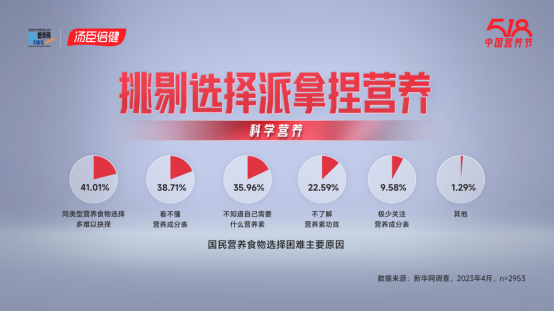 有超四成国民表示“同类型营养食物的选择太多,难以抉择”,其中,很多忙碌的上班族表示没时间去选择。另一方面,国民在营养食物选择时虽然对食材新鲜度、口味等极为关注,但对“营养素密度”相对关注不足,不知道怎么选择营养价值更高的食物。对于此类人群,需要对其科普更多科学营养知识,打破选择困难症,成为能科学拿捏营养的“挑剔”选择派。