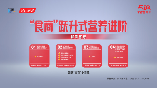 在调查中,仅7.45%的人答对了维生素B的作用。通过小测试,反映出多数国民不清楚食物的营养素及营养价值,以及每日的合理摄入标准。培养科学的大食物观,实现“食商”跃升式营养进阶,对每个人来说都十分重要。