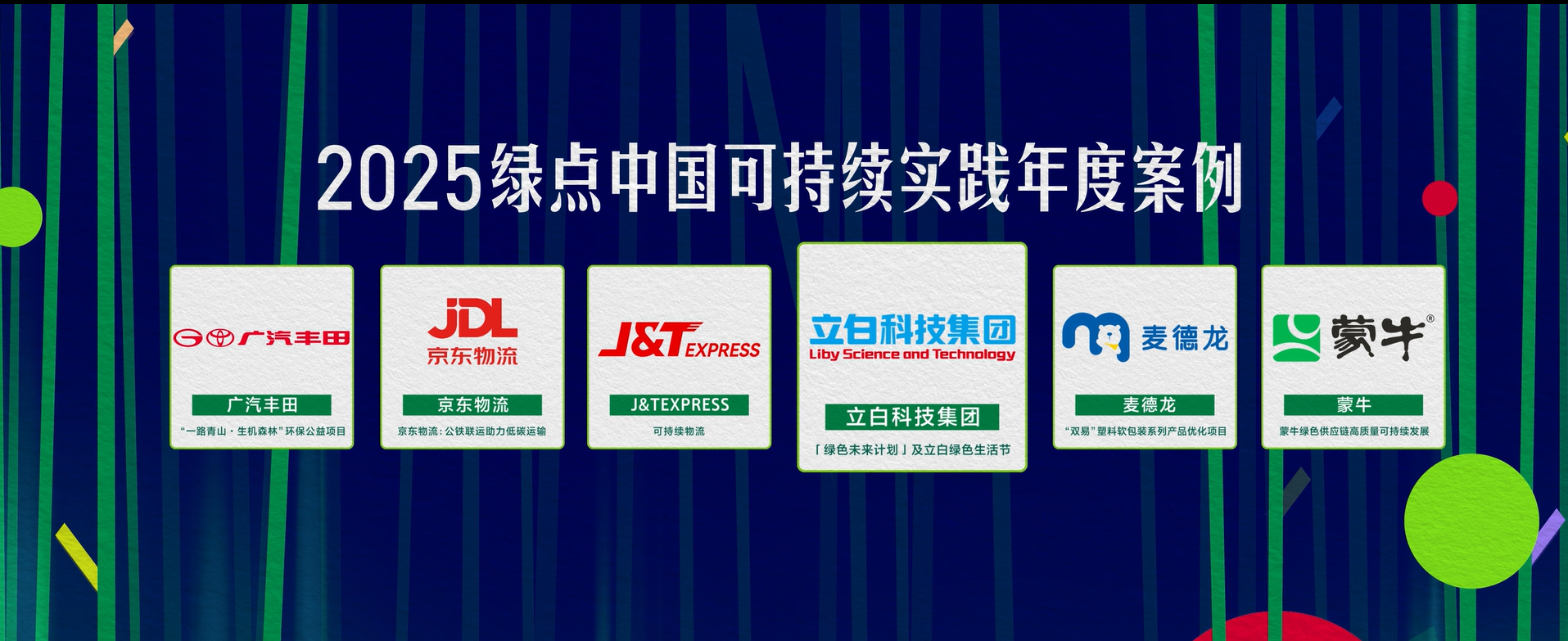 2025年9月25日,第四届“绿点中国·可持续实践案例”颁奖典礼在上海世博会博物馆隆重举行。立白科技集团凭借“「绿色未来计划」及立白绿色生活节”项目,从341个参评案例中脱颖而出,成功入围“绿色共创”赛道,并与百事可乐、蒙牛、欧莱雅、雀巢(中国)等知名企业共同获评“2025绿点中国·可持续实践年度案例”。